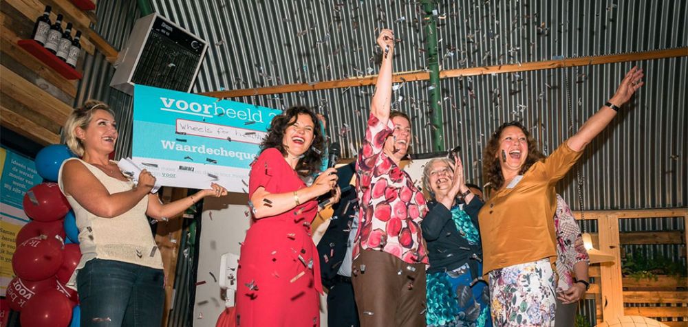 De partners van VOOR willen iedereen bedanken die zich heeft ingezet om de VOORbeeld-verkiezing mogelijk te maken. In het bijzonder de jury, toezichthouder Joke van Lonkhuijzen van de stichting VOOR, alle inzenders van mooie projecten, de genomineerden die hun project bevlogen hebben gebracht. En natuurlijk alle opdrachtgevers en VOOR ZPers dankzij wie er een mooi geldbedrag naar Wheels for Health gaat. Samen meer bereiken dan je voor mogelijk houdt – wij zijn VOOR.