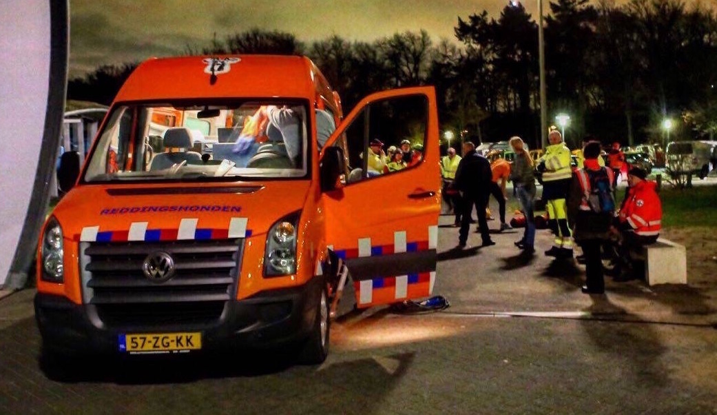 12.10 uur: alle aangesloten vrijwilligers van de stichting Reddingshonden RHWW krijgen een SMS-bericht ‘code 2’ bericht. Het is een oproep om diezelfde avond te helpen zoeken. De vermiste man is al vier dagen zoek, moet dringend zijn medicijnen hebben en er wordt kou verwacht. 19.30 uur: 64 vrijwilligers en 38 honden staan klaar voor de zoekactie. Sommigen hebben hiervoor twee uur in de auto gezeten. Behalve van de RHWW zijn er honden aanwezig van nog tien groepen van de Samenwerkende Reddingshonden Organisaties (SRO). De aansturing van de zoekactie gebeurt vanuit de oranje bus (de Centrale Post) die de RHWW dankzij het geld van de stichting VOOR kon aanschaffen en inrichten.