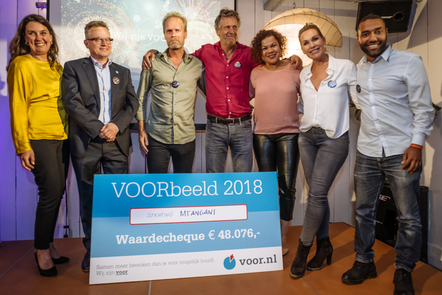 Op donderdag 14 juni jl. won stichting Mtangani de VOORbeeld-verkiezing 2018. Zij ontvangen van stichting VOOR € 48.076,- om hun project te realiseren: de start van middelbare school in Kenia in een omgeving waar nu alleen nog een lagere school staat. De middelbare school betekent veel voor de kans op werk en toekomst voor de lokale kinderen. Ook de andere twee genomineerde projecten kon de jury een stap vooruit helpen. Stichting Simba ontving € 24.038,- om een ziekenhuis in Tanzania met medische apparatuur te ondersteunen. En The Hunger Project ontving expertise in natura vanuit het VOOR-netwerk om hun project te helpen: trainen van vrouwelijke leiders in dorpsraden.